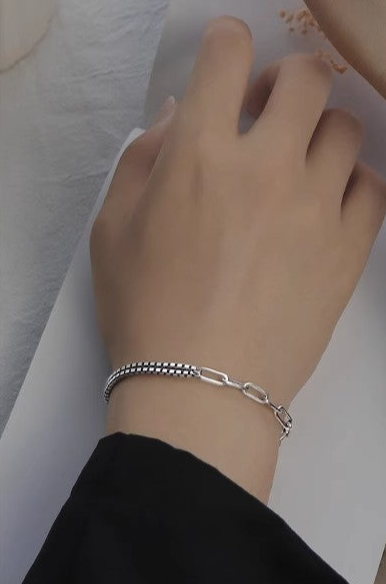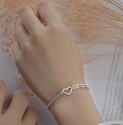 Love Heart Chain Link Style Sterling Silver Bracelet